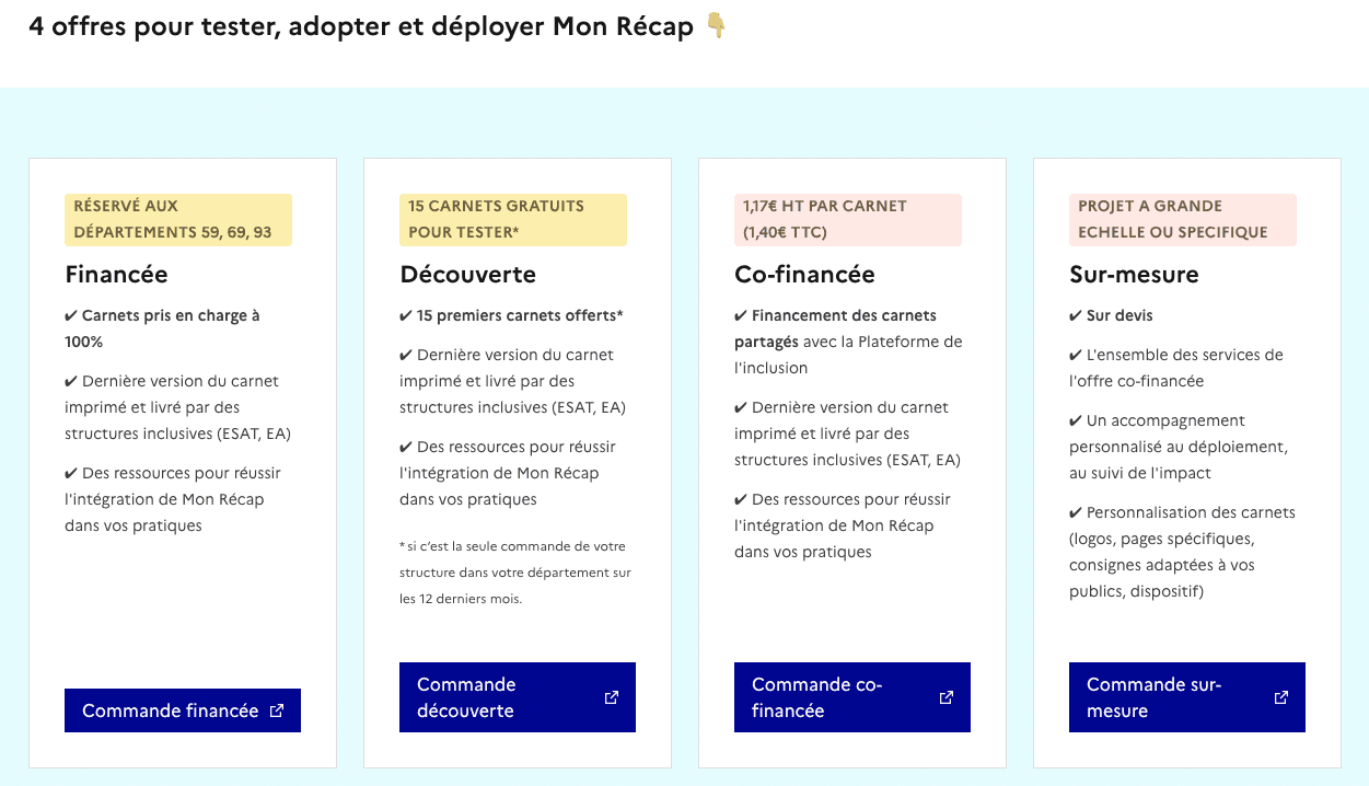 Commande de carnets Mon Récap